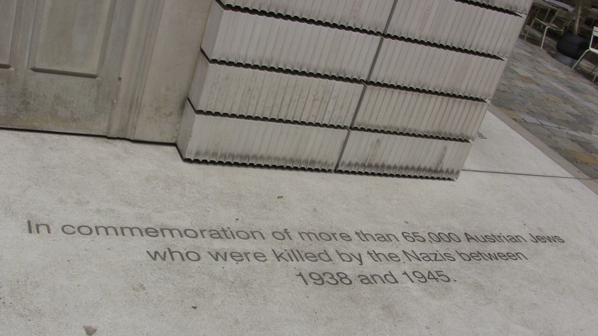 Thus, I strolled into so-called Jewish Plaza in downtown Vienna. The place has a monument that commemorates the memory of 65,000 Austrian Jews murdered by Hitler’s regime during World War II. In fact, I briefly visited this place earlier during one of my previous trips to Vienna. Yet, now looking at three identical inscriptions in three languages at the foundation of the monument I noticed something that earlier had not caught my attention. The inscription on the left is in German, the one on the right is in English, and the one in the middle is in Hebrew. The German one says, “In commemoration of more than 65,000 Austrian Jews who were killed by the National Socialists between 1938 and 1945.” So does the Hebrew one in the middle. Yet, the English version reads: “In commemoration of more than 65,000 Austrian Jews who were killed by the Nazis between 1938 and 1945.”
