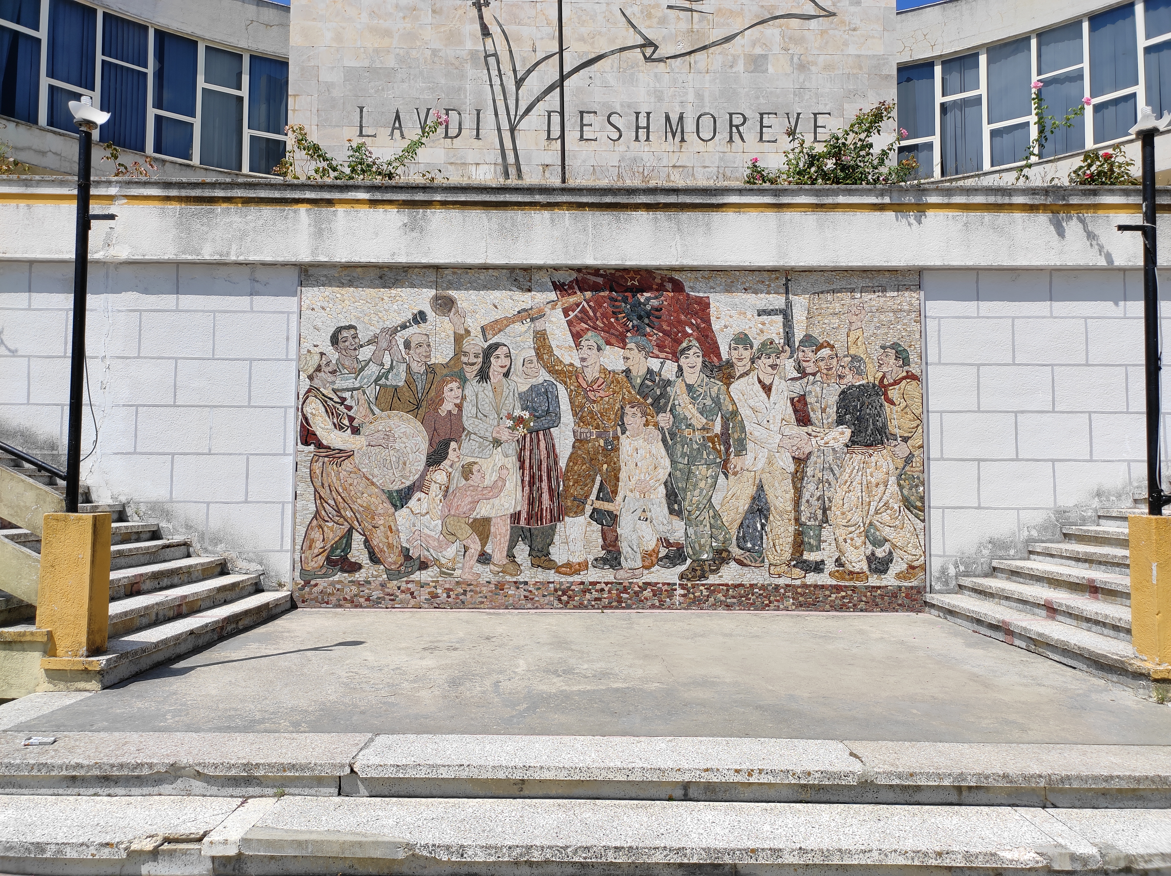 During my long traveling over Europe this summer, among other areas, I ventured to Albania, a country where houses frequently do not have numbers and where I located the building where a friend of my youth now lives by a drawing on a gate. This is a country where the so-called oriental bazaar is buzzing everywhere, where towns literally hang on cliffs, and where one easily runs across the ruins of the Roman, Byzantine, and Ottoman legacy of the country and the “archaeology” of the recent communist past (small concrete family bunkers, tunnels for the former communist nomenklatura, monumental sculptures and mosaics in the socialist realism style).