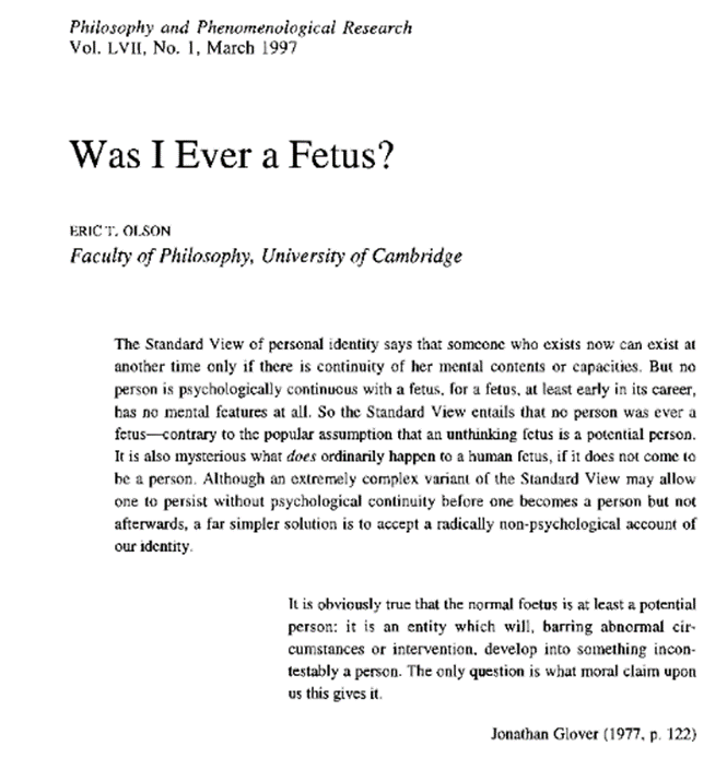 The Liberty/Oppression Taste Bud: Biological Individuality and the Foetus Problem