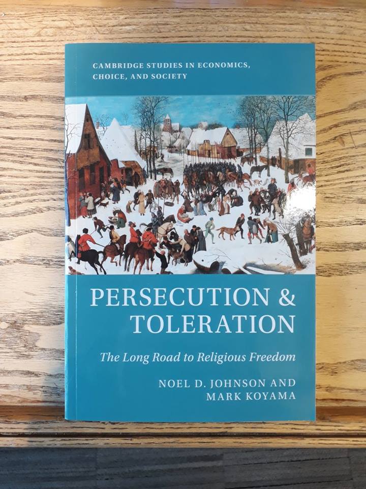 I’m glad to announce that my new book, Persecution & Toleration (with my colleague Noel Johnson) is now available in the UK. I’m hoping to receive copies next week. The book is available at CUP, although Amazon still has a US release date of April (you can preorder it).